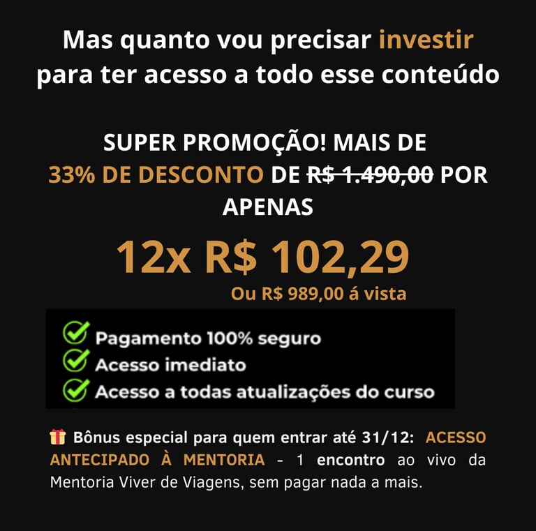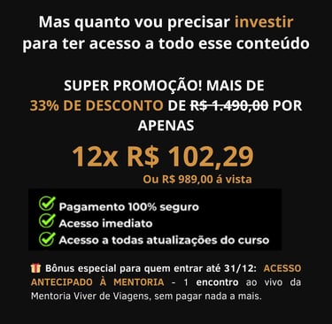 me permita te guiar por esse caminho e deixe o conhecimento ser o mapa que vai te fazer VIVER DE VIAGENS.